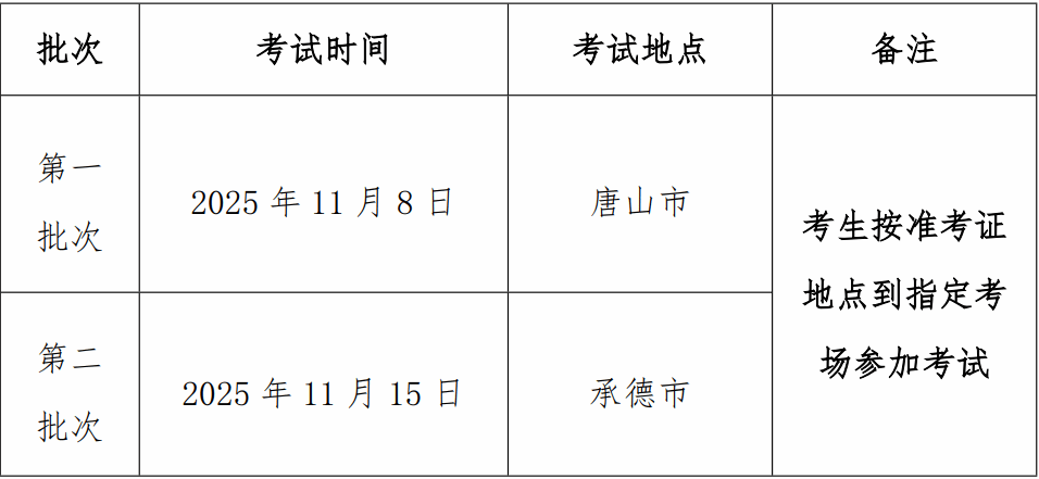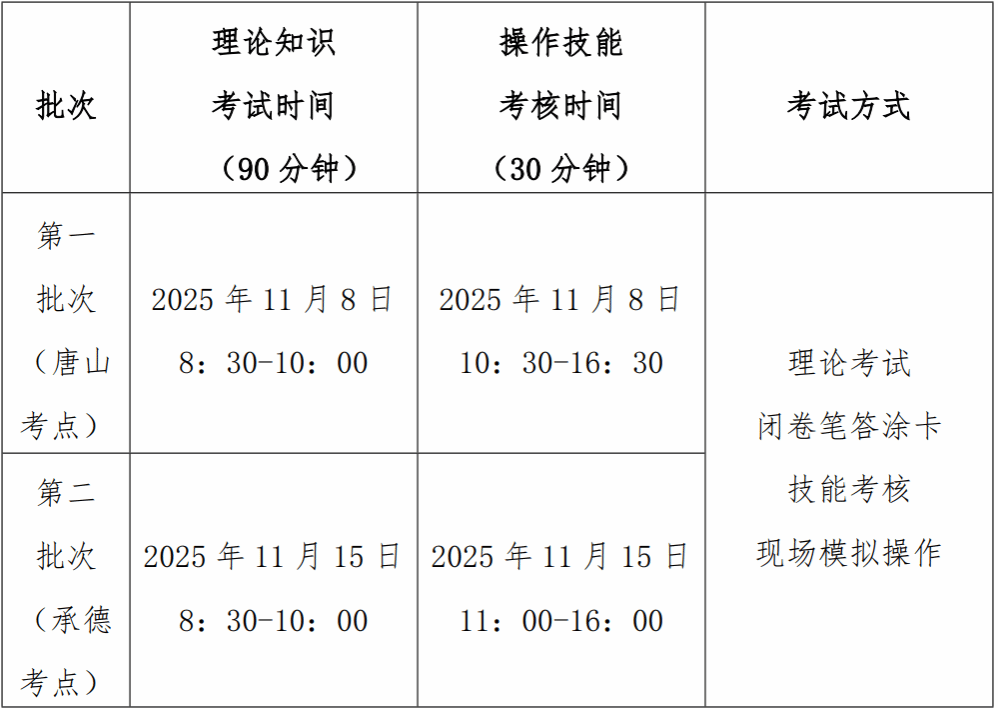 承德护理职业学院拟决定于2025年11月8日、11月15日分两个批次在本院和唐山学院(龙泽路校区)举办2025年河北省长期照护师(五级)职业技能等级认定考试,现将有关事项公告如下: