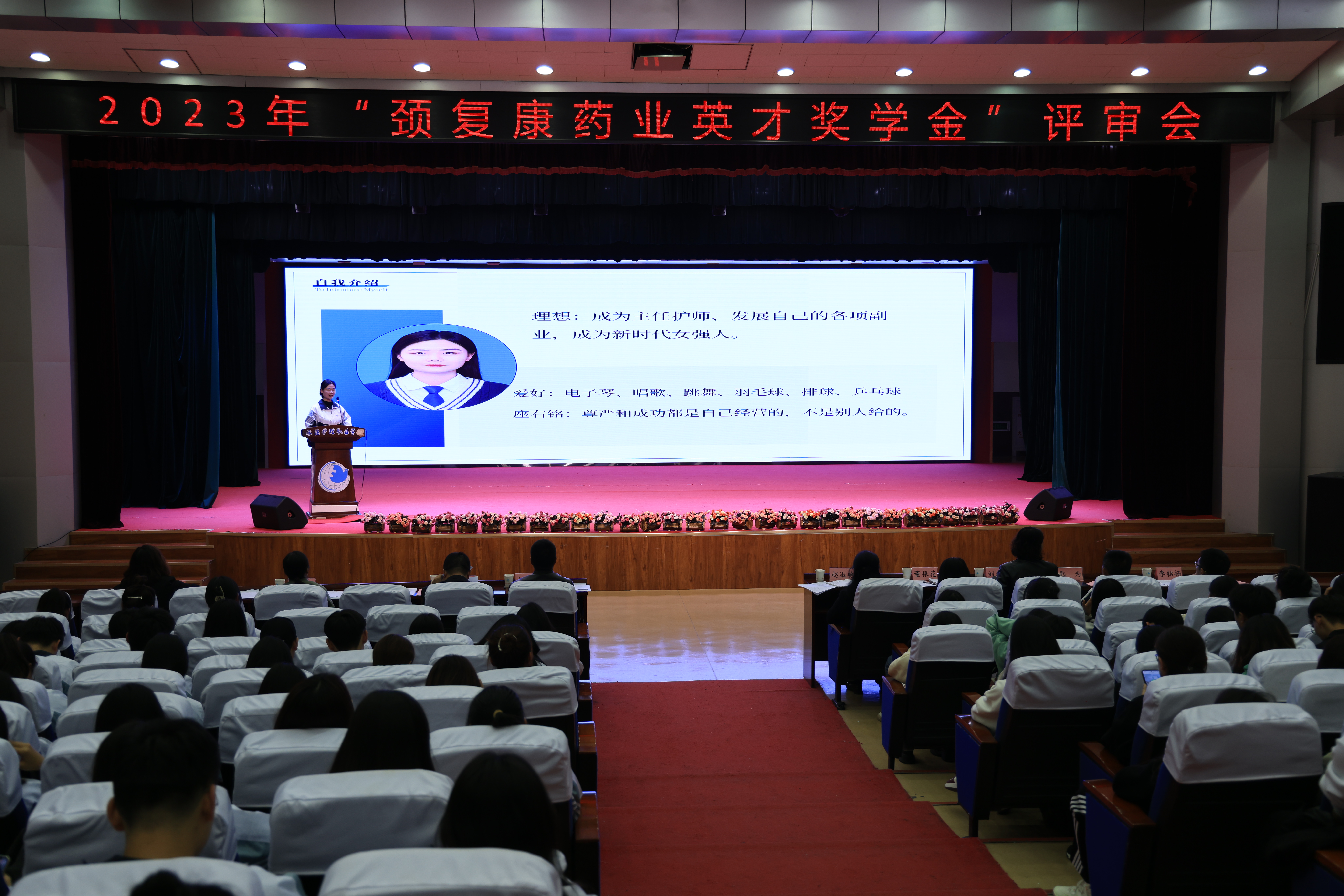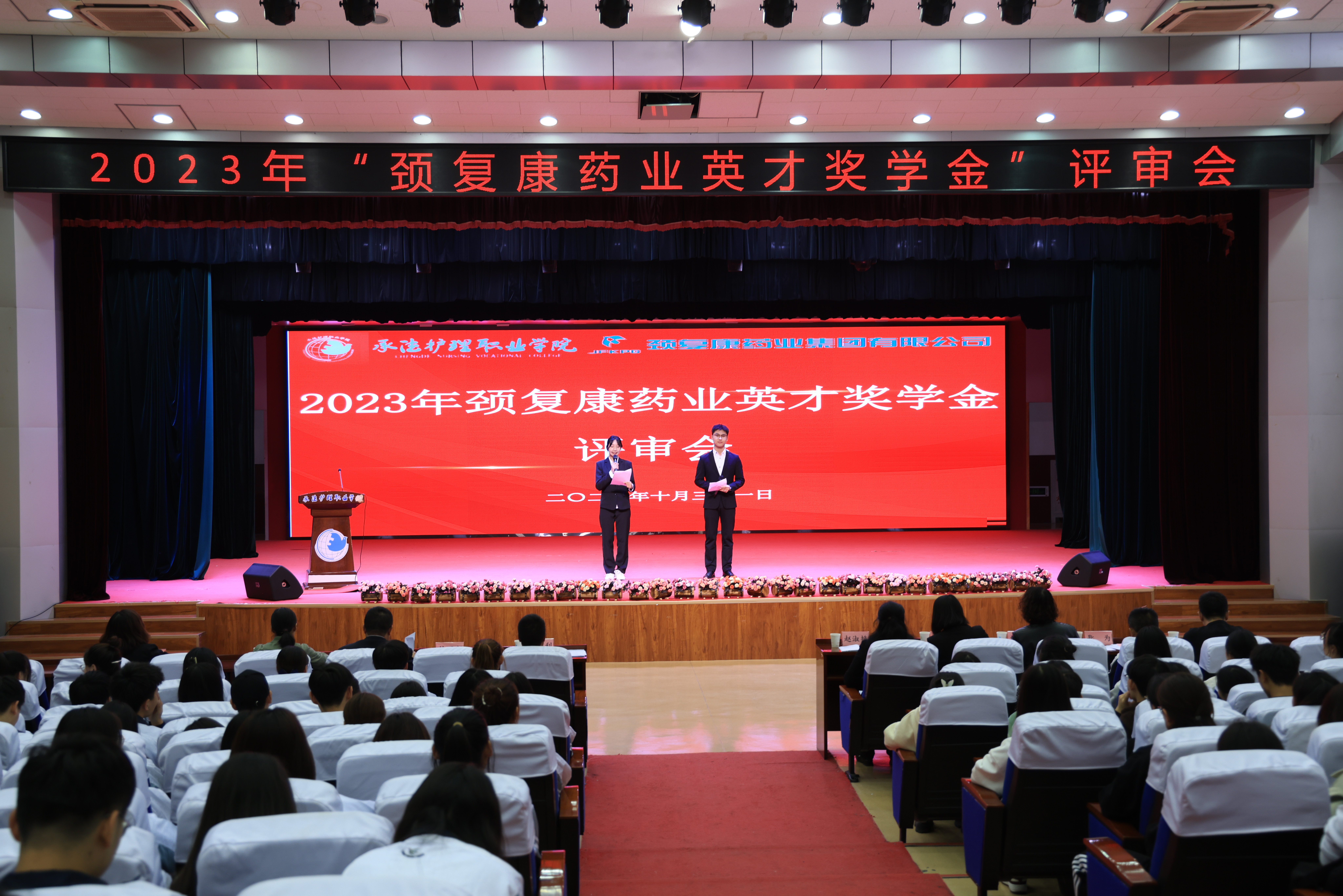 10月31日下午,学校在3号楼五楼会议厅召开“颈复康药业英才奖学金”评审会,颈复康药业集团市场部经理刘井利、颈复康药业集团市场部主管翟沙及学校7名部门负责人、老师担任评委,各班学习委员和学生代表370余人到现场参会。