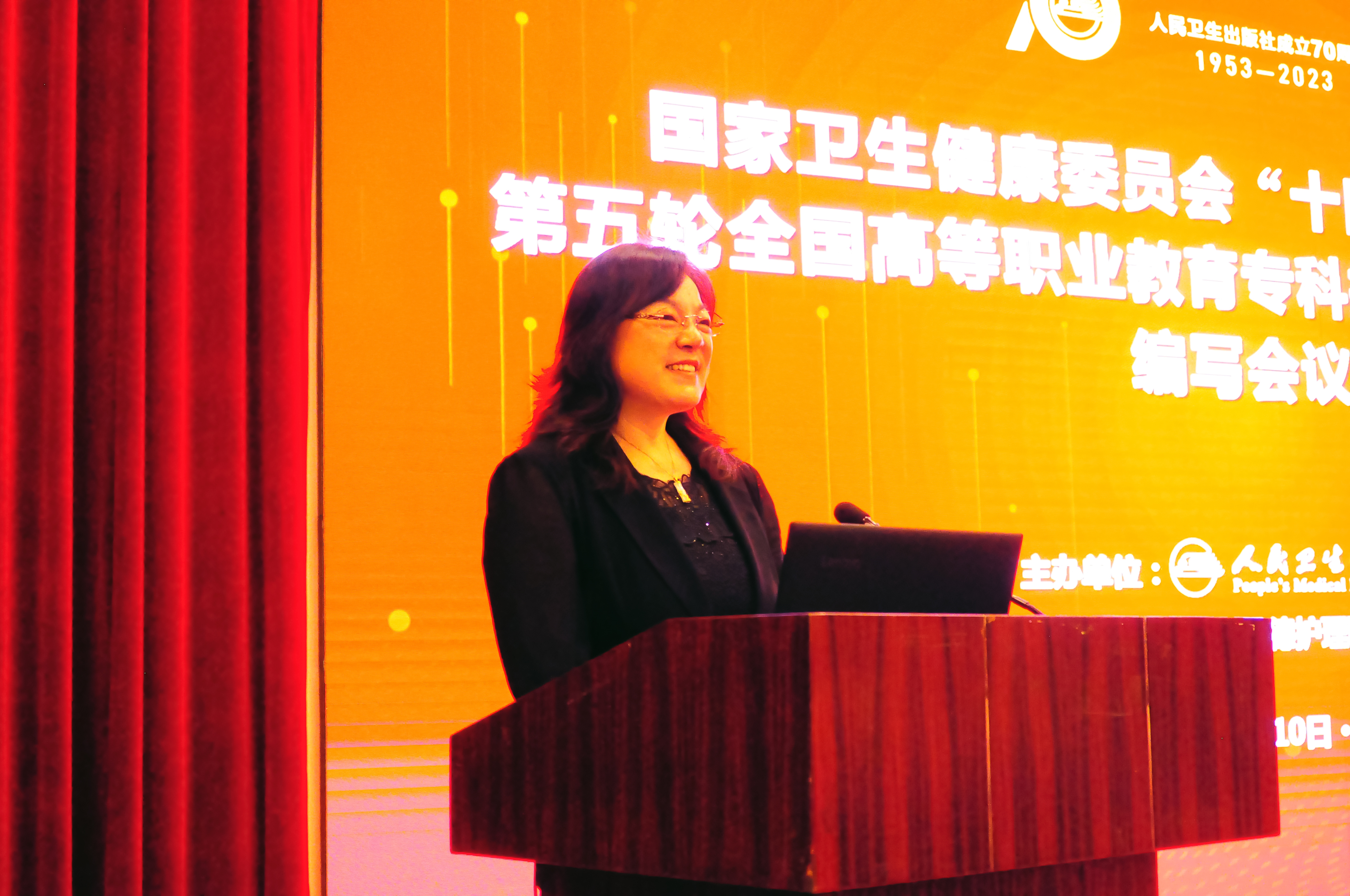 单伟颖在致辞中表示,本次大会是为推进护理类专业教材发展,为培养高素质护理人才提供优秀载体,有效推进国家卫生健康委员会“十四五”规划教材编写工作。同时表示,要努力把第五轮全国高等职业教育专科护理类专业规划教材编成高质量、高水平的优秀教材,向人民卫生出版社,向国家卫健委及未来广大读者交出满意答卷。