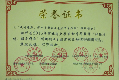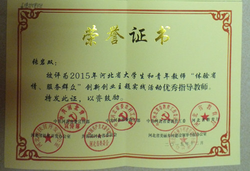 我院在2015年河北省大学生和青年教师“体验省情 服务群众”创新创业主题实践活动中受到表彰