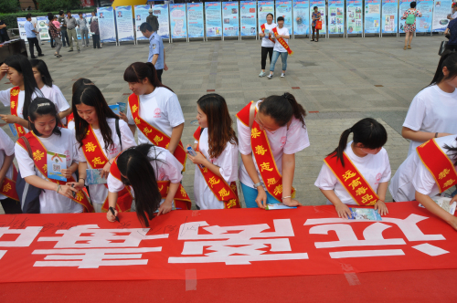 6月26日是“国际禁毒日”,为弘扬正气,促进青少年身心健康,远离毒品,珍爱生命,我院团委和承德市公安禁毒支队在承德市中心广场联合举办了“合成毒品与青少年预防教育”大型宣传活动。承德市公安局禁毒支队队长、政委及相关负责人员、学院团委书记陈荟洁及100余名志愿者参加了此次活动。