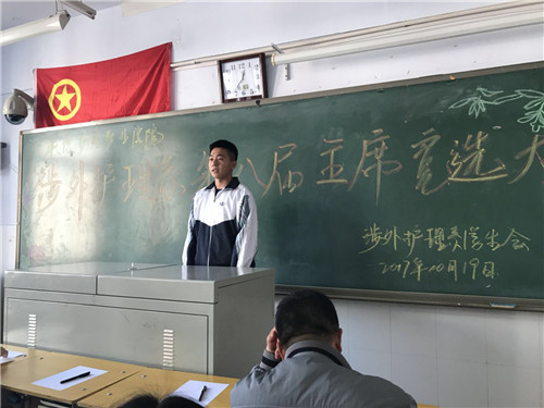 为打造更具有凝聚力、创造力的学生干部团队,构建和谐、文明校园,加强团队建设。涉外护理系分别于10月19日、10月26日组织召开了第八届学生会、团总支干部竞聘大会。涉外护理系党总支副书记韩国新、副主任郝克军、团总支书记张岩双、教师代表及各班级学生代表参加了竞聘大会。