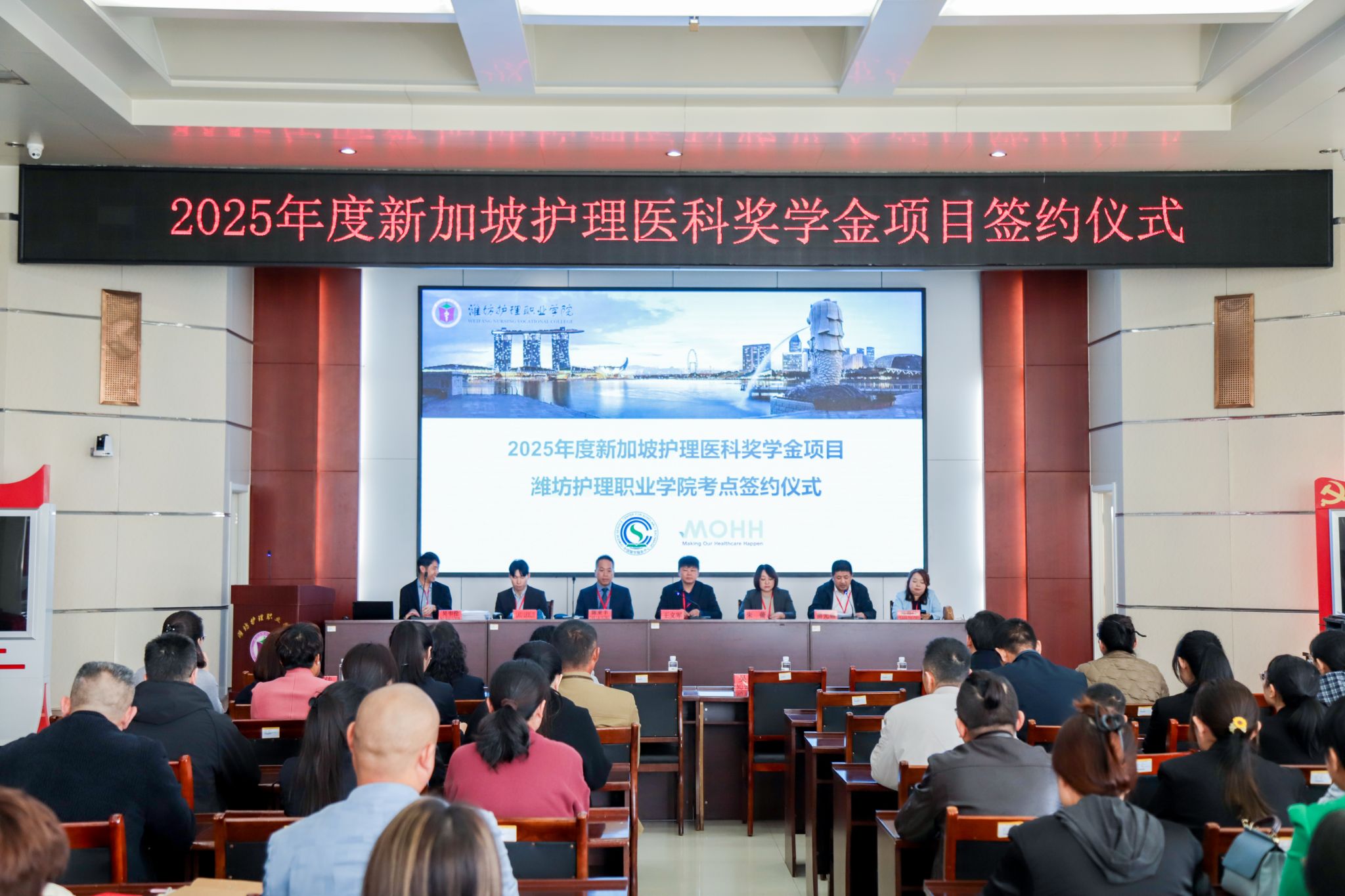 10月28日至11月1日,2025年新加坡护理医科奖学金项目招生考试在潍坊护理职业学院举行。通过新方严格的笔试和面试考核,最终,我院共有9名学生脱颖而出获得项目全额奖学金,并于11月1日顺利完成签约。至此,我院已有49名学生入选该项目。