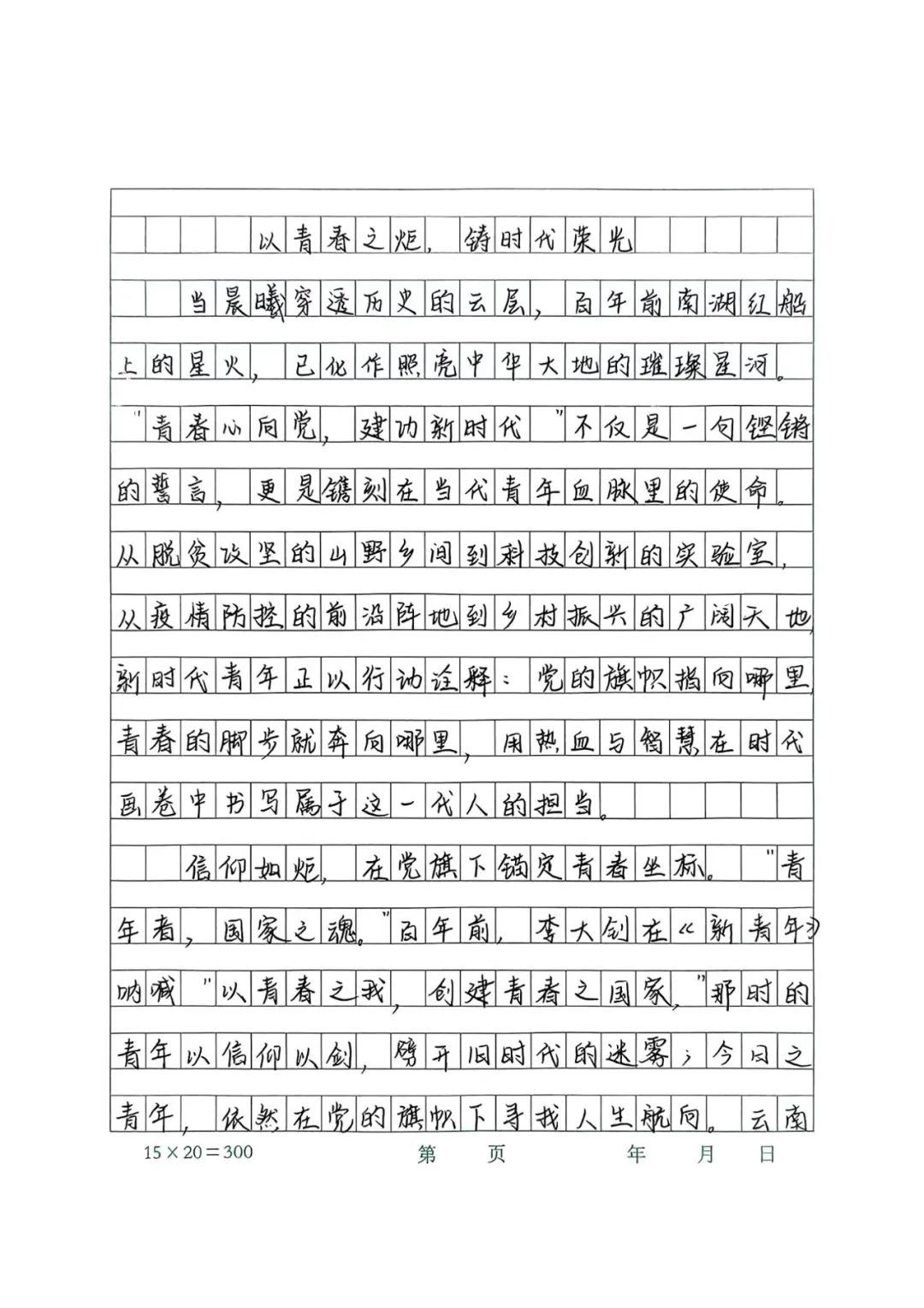 比赛期间,同学们踊跃参与,以笔为剑、以文为舟,展开了一场跨越时空的精神对话。他们回溯千年文脉,探寻中华精神的深厚底蕴,从古老神秘的甲骨青铜文明印记,到震撼人心的航天探月时代华章,在文字中勾勒出中华文明的辉煌历程。同时,同学们也聚焦当下,将目光投向新时代奋斗者的身影,生动书写脱贫攻坚战场上青年们留下的坚实足迹,以及科技创新前沿展现出的热血担当。