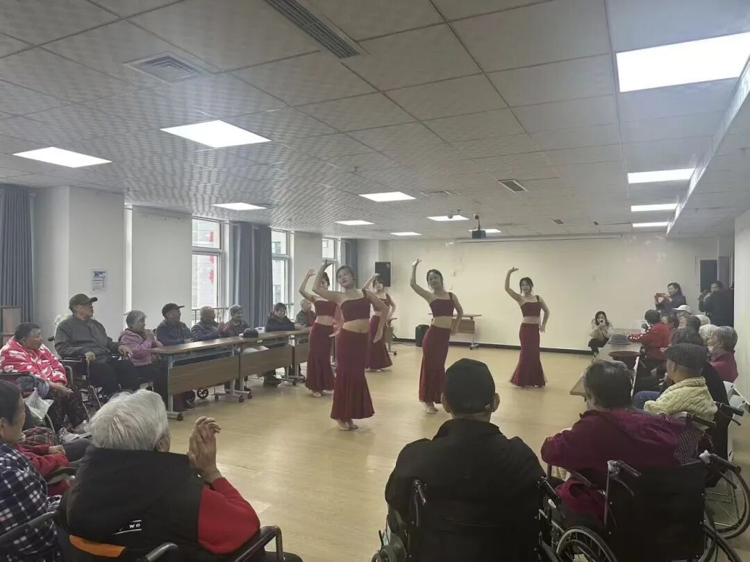演出在李珮苑甜美的《甜蜜蜜》中温馨开场。随后,志愿者们轮番登台,《月亮代表我的心》《军港之夜》等经典曲目依次唱响。张玉瑶深情演绎《当你老了》,李涵真挚演唱《我只在乎你》,马鸿翔激昂献唱《在那桃花盛开的地方》,都赢得老人们阵阵掌声。承德护理职业学院天使艺术团民舞社的《彩云之南》,以优美舞姿和浓郁民族风情,将气氛推向高潮,老人们跟着节奏轻轻拍手。演出在《阳光总在风雨后》的温暖旋律中圆满结束,寄托着对老人们的美好祝福。