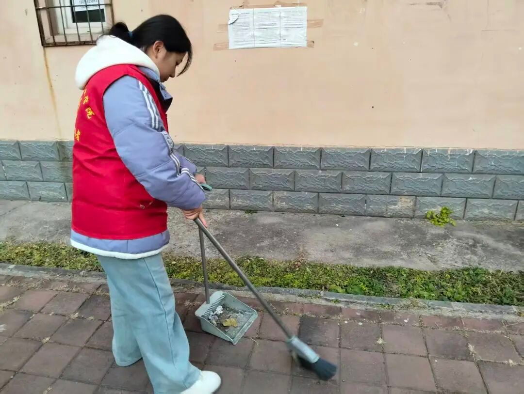 草坪间的枯枝败叶、路面上的落叶碎石、宣传栏旁的卫生死角,都成了志愿者们的“攻坚目标”。大家热情高涨、不怕脏,不怕累,不放过任何卫生盲区,现场呈现一片忙碌有序的劳动景象。